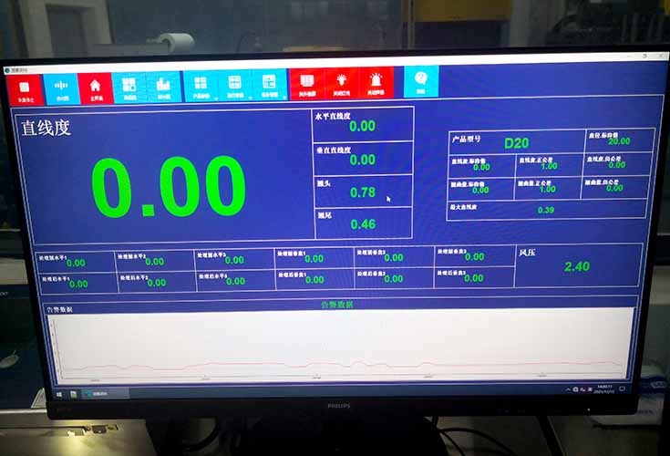 測(cè)量結(jié)果的聲光報(bào)警:可設(shè)置報(bào)警的閾值,測(cè)量值超差時(shí)聲光報(bào)警;管材兩端500mm內(nèi)直線度設(shè)置報(bào)警,整根鋼管直線度設(shè)置超差報(bào)警;