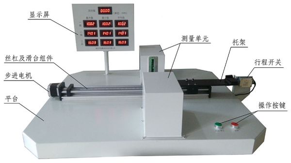 測(cè)量時(shí),將膠條及工裝放在移動(dòng)托架上,一次最多可放置3段。然后啟動(dòng)測(cè)量,滑臺(tái)帶動(dòng)移動(dòng)托架行走對(duì)膠條進(jìn)行掃描測(cè)量,掃描完成后設(shè)備分別顯示并記錄3段膠條的最大值、最小值和平均值。膠條老化前后各測(cè)量一次,通過(guò)兩次測(cè)量結(jié)果的對(duì)比判斷膠條是否合格。
